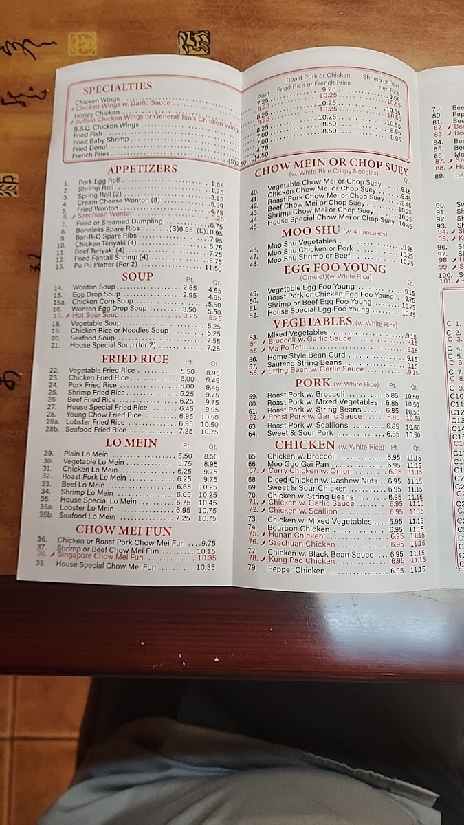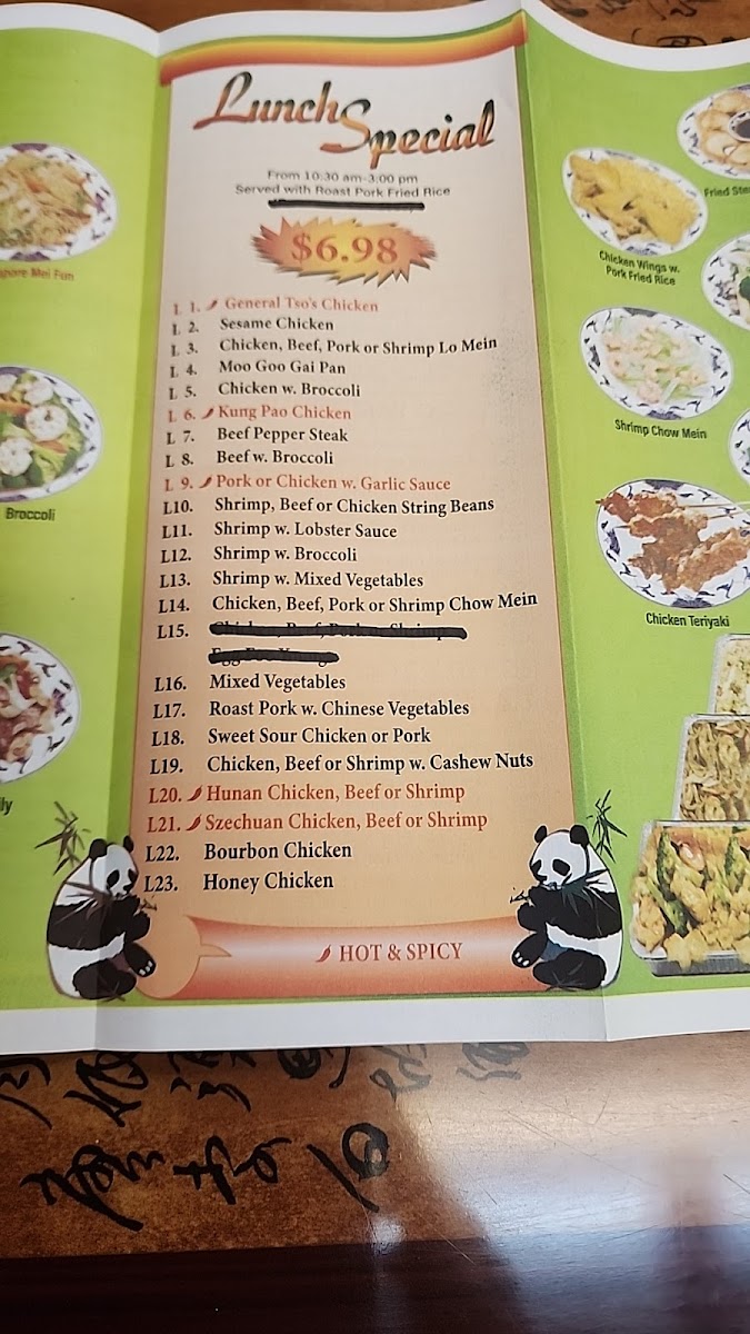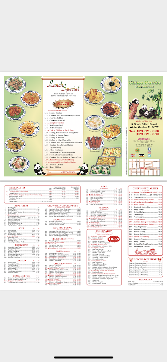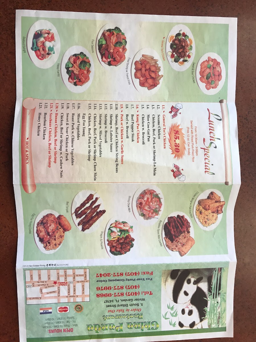 China Panda Menu